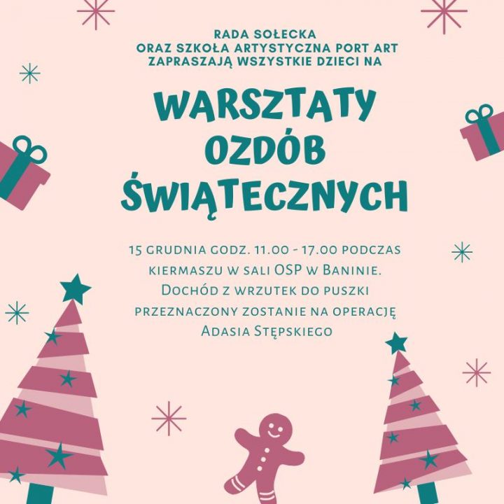 ➡️ Już w najbliższą niedzielę zapraszamy do banińskiej remizy na ☃️🎄🎅 I Kiermasz Świąteczny ☃️🎄🎅 , którego dochód zostanie przeznaczony na operację Adasia Stępskiego. Niedziela 15.12.2019 godz. 1100-1700.