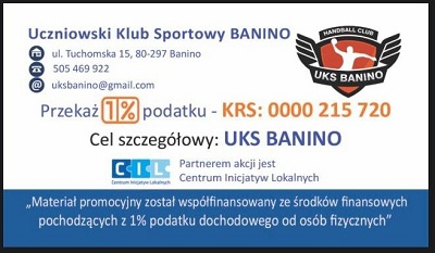 Przekaż swój 1% podatku na… 🤾♀️🤾♂️UKS BANINO🤾♀️🤾♂️https://www.facebook.com/UKS-Banino-296264657639840/