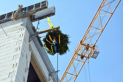 Wiecha na budynku rozbudowywanej szkoły w Baninie zawieszona