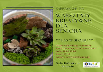 Zapraszamy serdecznie na warsztaty kreatywne skierowane do Seniorów z Banina i okolic gminy Żukowo. Spotykamy się już 18 maja 2023...