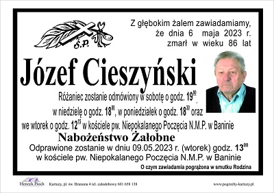 W dniu dzisiejszym z wielkim smutkiem i żalem przyjęliśmy informację o śmierci dh Józefa Cieszyńskiego, Honorowego Prezesa i wieloletniego Druha...