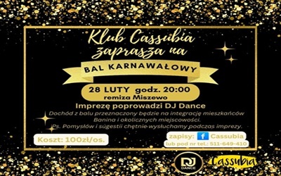 KLUB CASSUBIA zaprasza na BAL KARNAWAŁOWY.