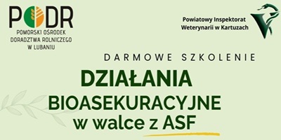 Pomorski Ośrodek Doradztwa Rolniczego w Lubaniu organizuje wspólnie z Powiatowym Inspektoratem Weterynarii w Kartuzach szkolenie powiatowe „Działania Bioasekuracyjne w walce...