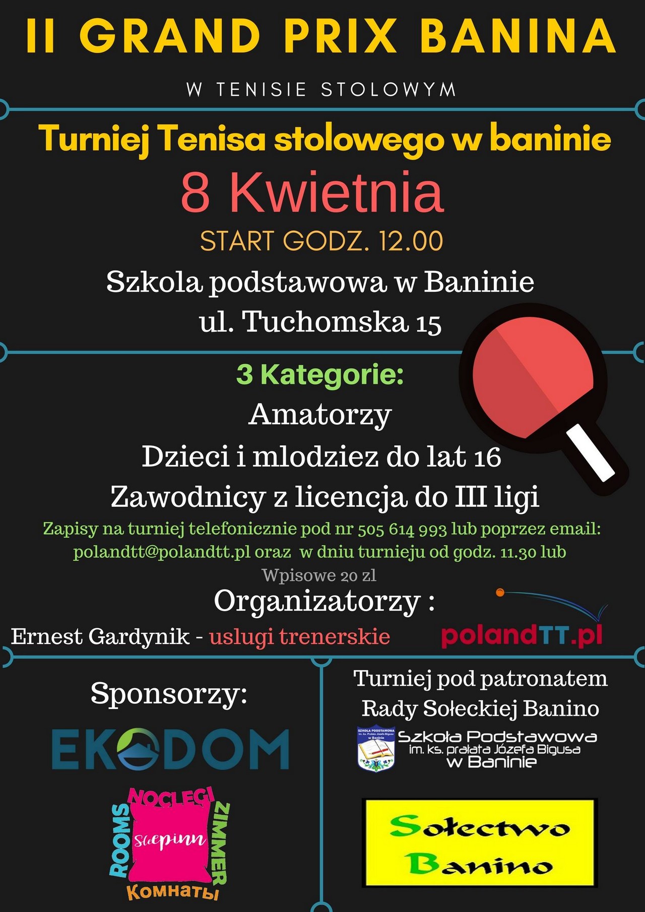 ZAPRASZAMY NA TURNIEJ TENISA STOŁOWEGO W BANINIE „II GRAND PRIX BANINA”