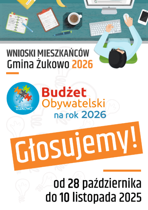 5. Po zakończeniu głosowania (10 listopada) wyniki zostaną ogłoszone na stronie Budżetu Obywatelskiego Gminy Żukowo, BIP oraz stronie internetowej zukowo.pl