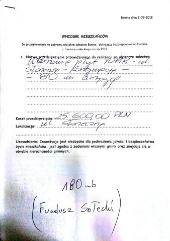 Pozostałe 2 wnioski zaproponowaliśmy by zamieścić we wniosku do Budżetu Gminy na rok 2019 tak, aby Pan Radny, który to tak bardzo troszczy się o okolicę, w której mieszka miał okazję się wykazać i pozyskać te pieniądze.