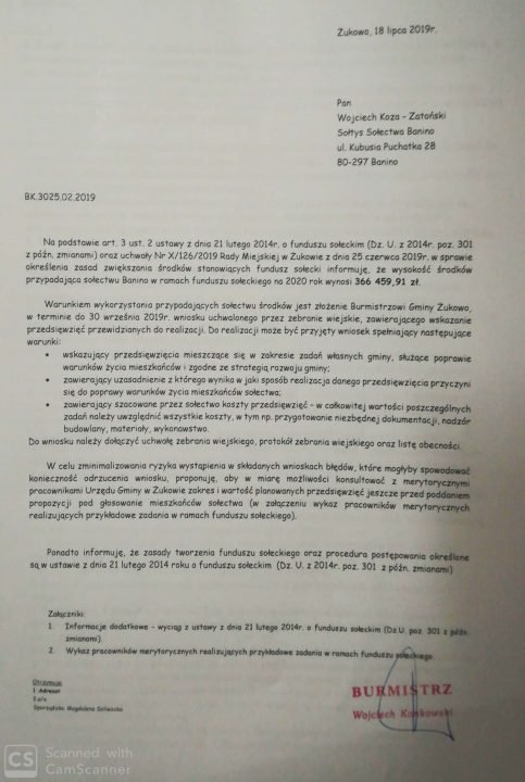Jednocześnie chciałbym poinformować Państwa, iż z racji faktu, że w Sołectwie Banino jest najwięcej mieszkańców z wszystkich Sołectw w Gminie Żukowo otrzymaliśmy najwyższy Fundusz Sołecki oraz dodatkowy fundusz.