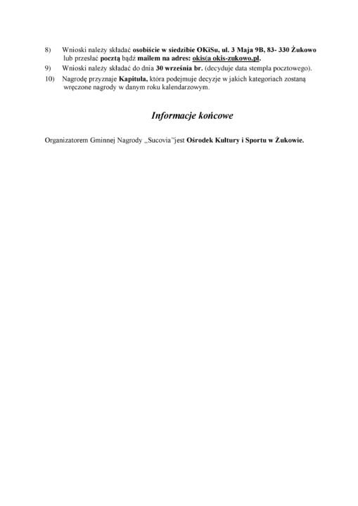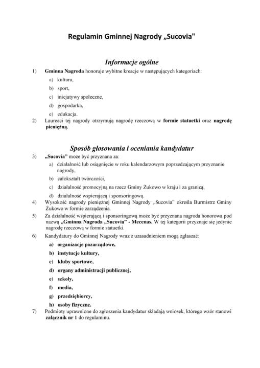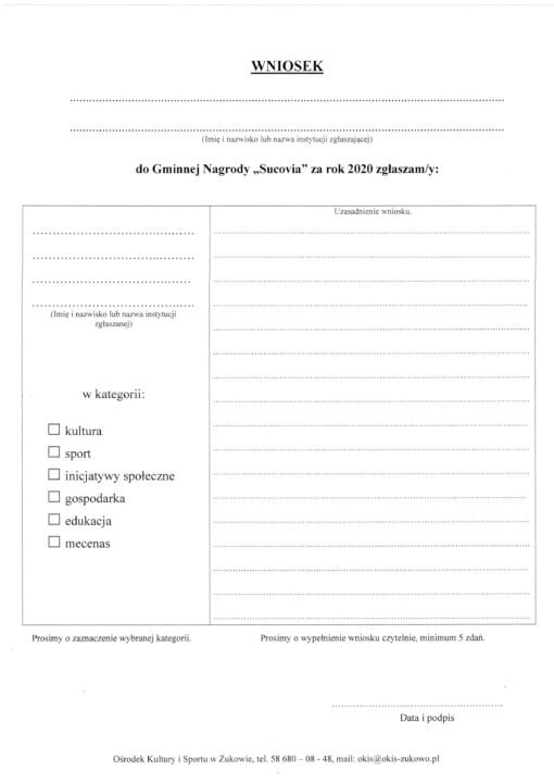 Gminna nagroda SUCOVIA 2020 przez Wojciech Koza-Zatoński · 2021-09-09 Załączniki Plik Opis Pobrania wniosek sucovia 521