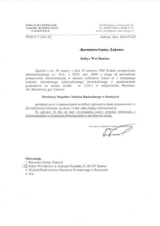 Sprawozdanie z działalności Sołtysa i Rady Sołeckiej Sołectwa Banino za rok 2025