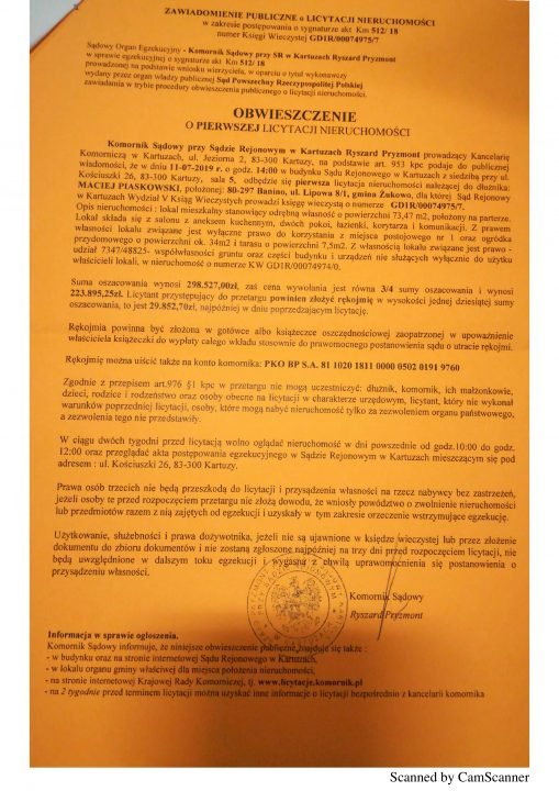 OBWIESZCZENIE o licytacji nieruchomości przez Wojciech Koza-Zatoński · 2019-06-26 Załączniki Plik Opis Pobrania Nowy Dokument 2019-06-26 20.49.01 770