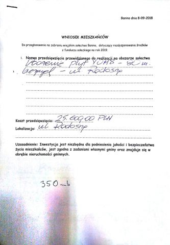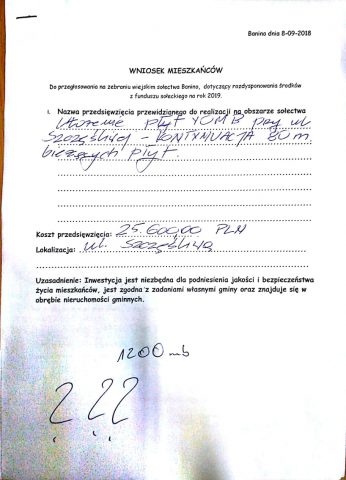Pozostałe 2 wnioski zaproponowaliśmy by zamieścić we wniosku do Budżetu Gminy na rok 2019 tak, aby Pan Radny, który to tak bardzo troszczy się o okolicę, w której mieszka miał okazję się wykazać i pozyskać te pieniądze.